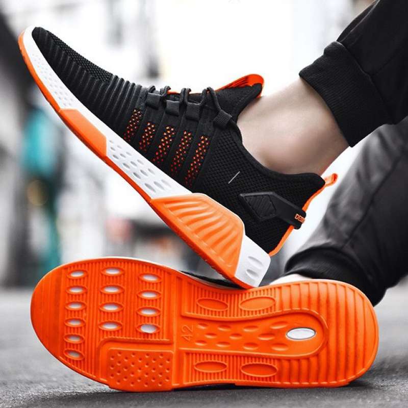Jual Sepatu Sneakers Pria Casual Asli Impor Warna Hitam Oren Mr112 Indonesia Shopee Indonesia